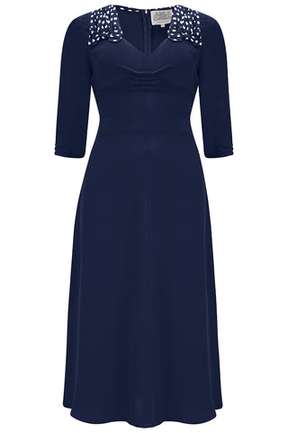 "Iris" Tea Dress in Palace Blue, Classic & Authentic 1940s Style at its Best By The Seamstress of Bloomsbury