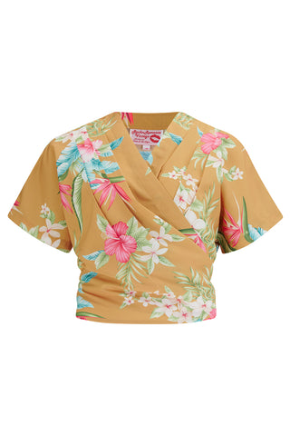 The "Darla" Short Sleeve Wrap Blouse in Secret Garden Print, True Late 1940s Vintage Style