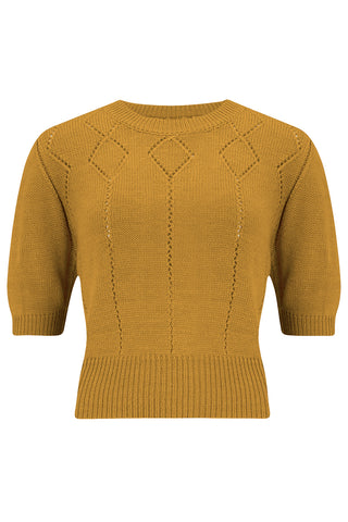 The "Vera" Short Sleeve Pullover Jumper in Mustard, Classic 1940s & 50s Vintage Style