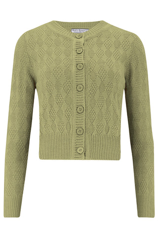The "Sandra" Textured Diamond Knit Cardigan in Cherry Red, 1940s & 50s Vintage Style