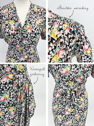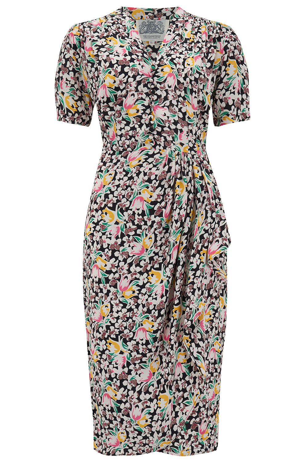 "Mabel" Waterfall Dress in Tulip Print A Classic 1940s Inspired Vintage Style