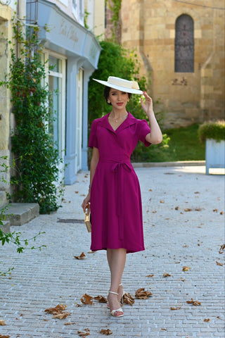 Ruby Dress in Mulberry, A Classic & Authentic 1940s Vintage Inspired Style By The Seamstress Of Bloomsbury