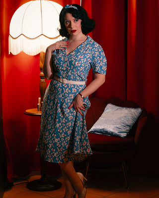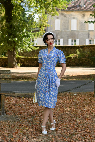 "Iris" Tea Dress in Palace Blue, Classic & Authentic 1940s Style at its Best By The Seamstress of Bloomsbury