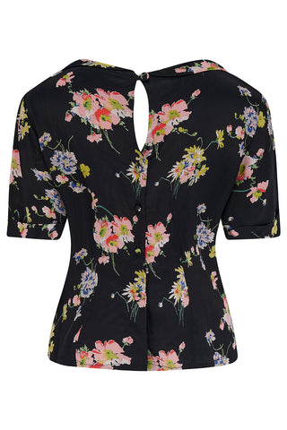 Cindy Blouse In Black Mayflower Print, Classic 1940s Vintage Inspired Style By The Seamstress of Bloomsbury