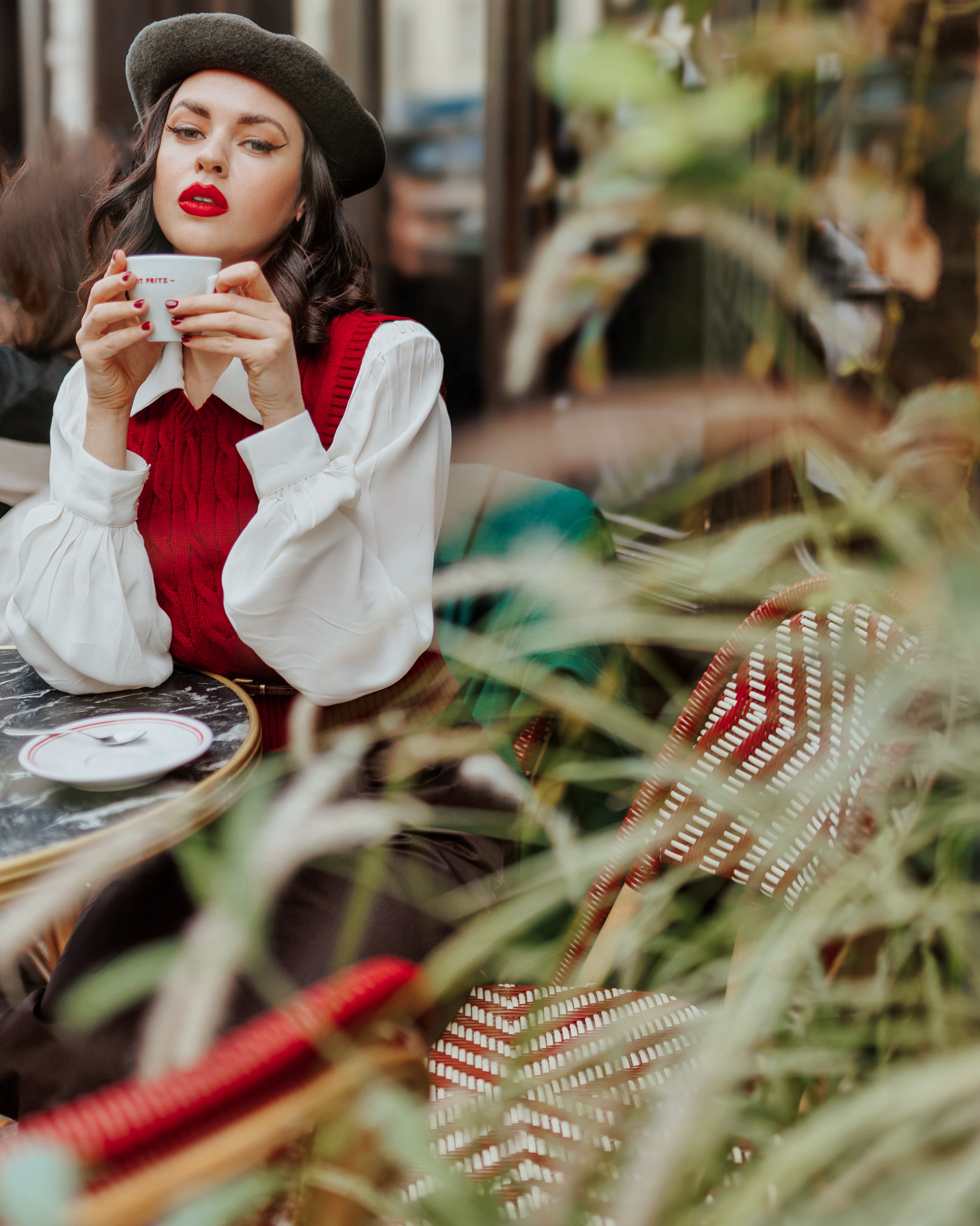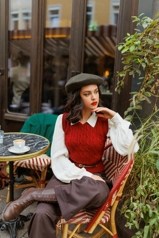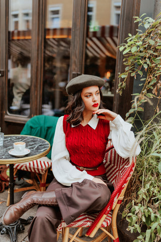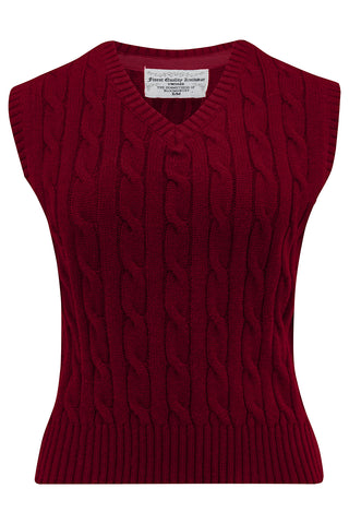 Slipover en tricot torsadé dans le vin, superbe style vintage des années 1940