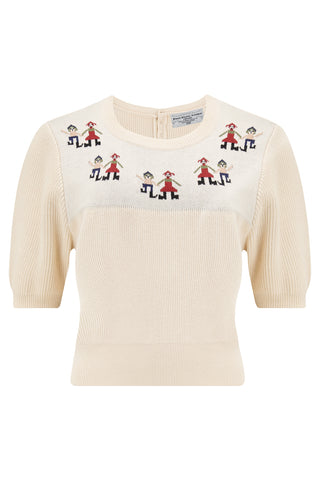 le tout nouveau pull Beverley 100 % coton s'inspire d'un design original des années 1940. Les couleurs des figurines sont faites pour correspondre aux couleurs unies de base de notre collection existante, donc parfaites pour être mélangées et assorties avec d'autres vêtements Seamstress of Bloomsbury.