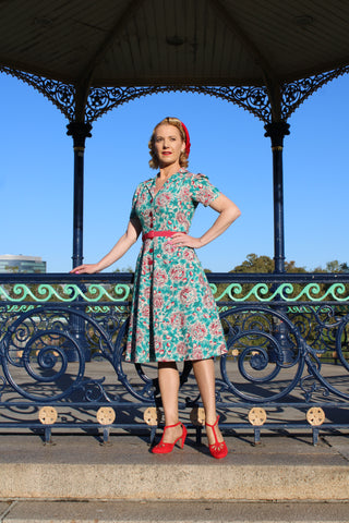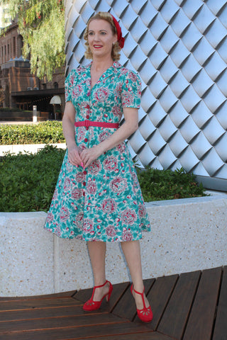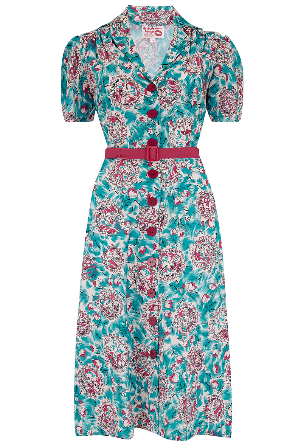 Straight from our vintage style archive, this was a firm favourite from the moment we saw it, The Charlene Shirtwaister Dress.. An absolute winner in the 1940s, 50s as it is Today.. With its simple vintage lines, this effortless piece hugs in all the right places; whilst letting you have the freedom to move in whatever way you want, daytime or night! The true vintage style and contrasting natural wood buttons & belt really set this beauty off.