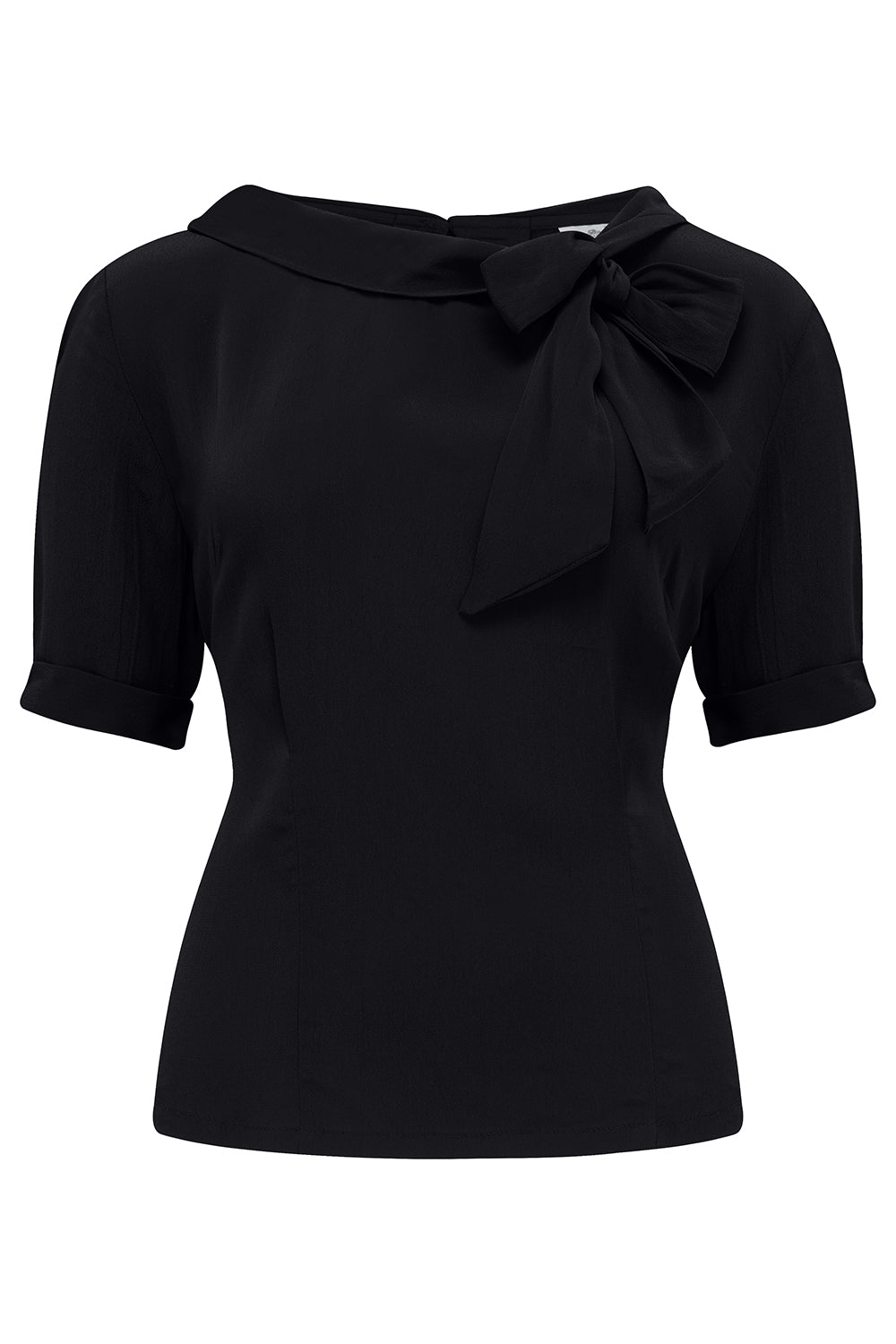 Chemisier Cindy en noir, style inspiré vintage classique des années 1940