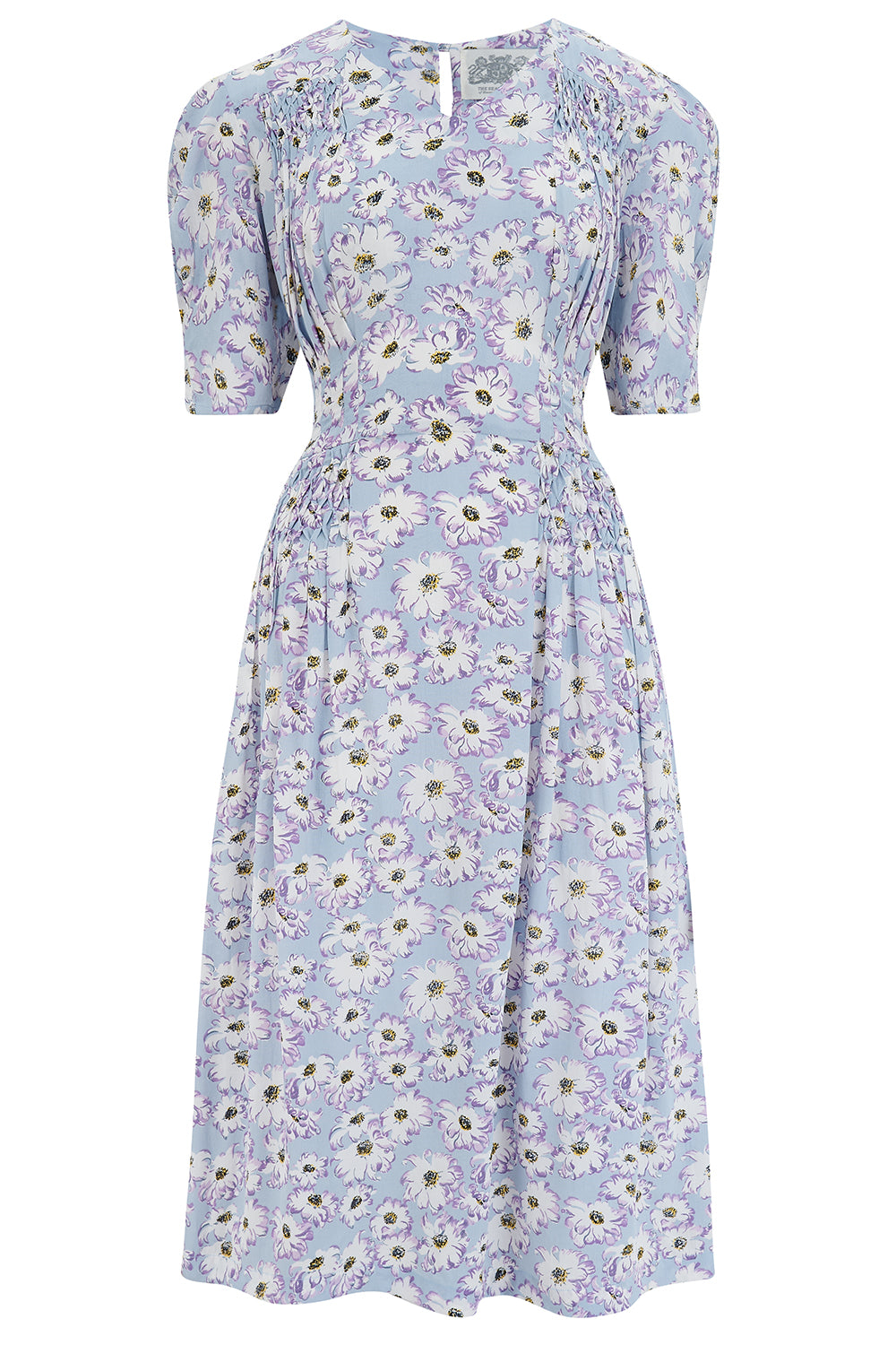This is the quintessential 1940s classic day dress. It is simple and easy enough to wear for all sorts of twenty-first century work and play. It is also the most flexible and flattering dress you will ever own. Tiny box pleats around the waist create a slim smooth shape and the true wrap style means that it ties to your perfect fit, both on the bust and the waist. Perhaps these are the reasons that make this our best-selling style, or perhaps it is because this dress makes so many ladies look and feel beautiful and well-dressed, in so many different situations.