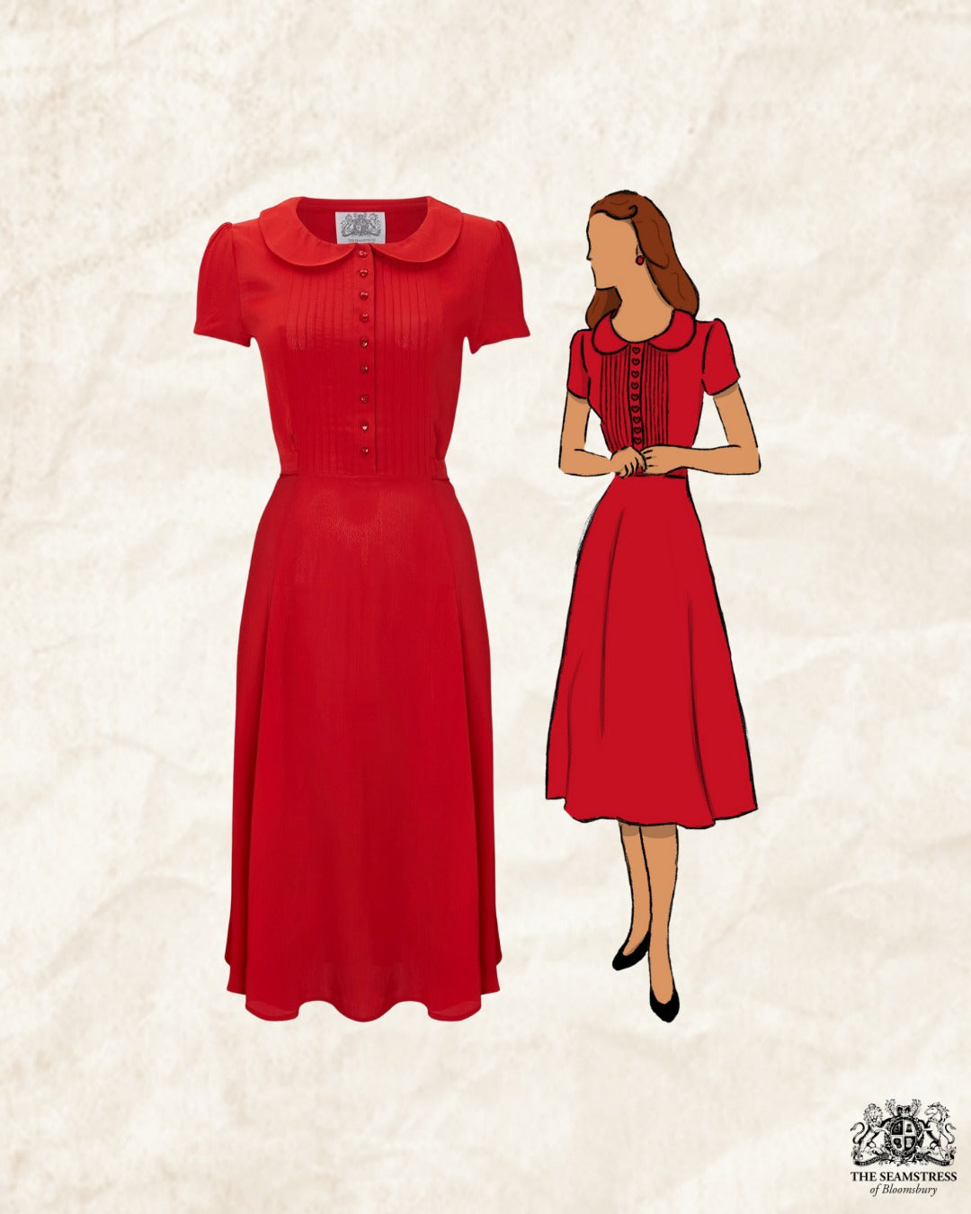 Une « couturière de Bloomsbury » originale, tout simplement le tissu de la meilleure qualité, l'attention portée aux détails et le design authentique de Lilian Wells. Lilian était la "couturière de Bloomsbury" originale. Elle a confectionné de magnifiques vêtements tout au long des années 1930, 40 et au début des années 50 pour l'aristocratie de Londres, luttant contre le Blitz et les circonstances que nous ne pouvons même pas commencer à imaginer, mais sans jamais faire de compromis sur sa qualité ou son charme. savoir-faire.. Elle était une femme très privée mais merveilleuse et une source d’inspiration pour nous tous. À travers cette merveilleuse gamme de vêtements des années 1940, nous visons à perpétuer son héritage.