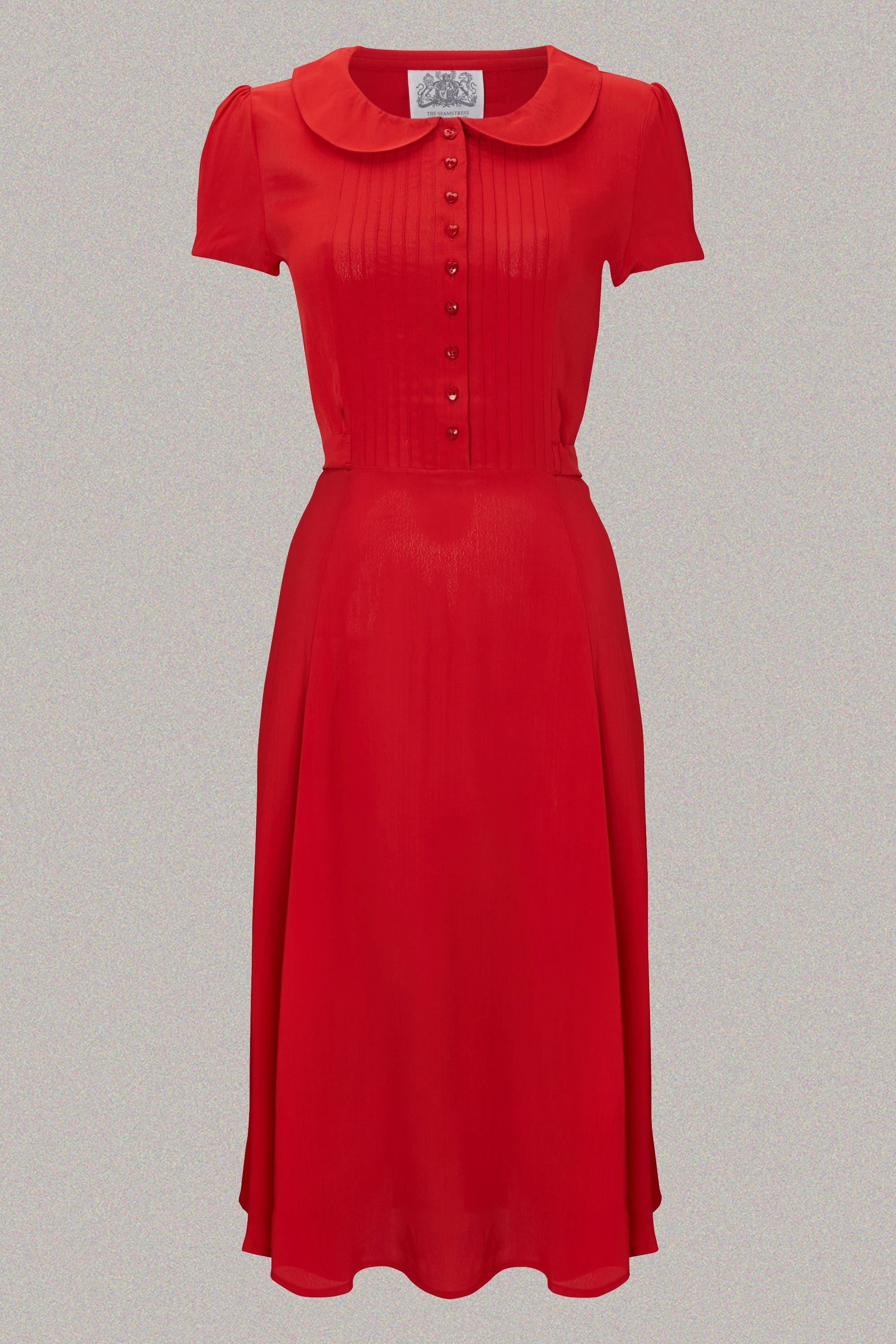 Robe trapèze « Dorothy » en rouge boîte à piliers, un style vintage classique inspiré des années 1940