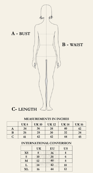 Veuillez noter que tous nos articles sont vendus dans les tailles britanniques. Les tailles de robes australiennes sont les mêmes que celles du Royaume-Uni.