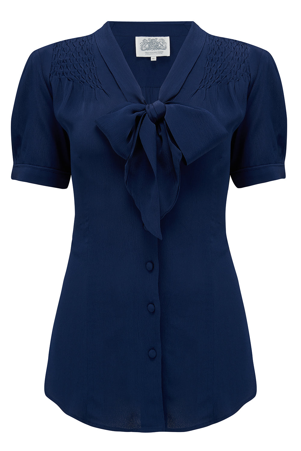 Eva Blouse manches courtes en bleu marine, style vintage authentique et classique des années 1940