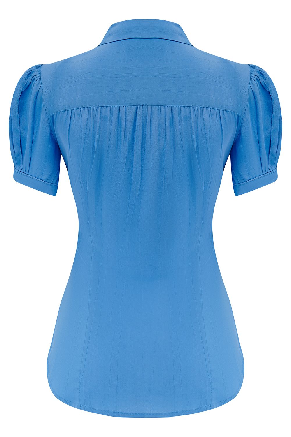 Eva Blouse Short Sleeve in Palace Blue, Authentic & Classic 1940s Vintage Style