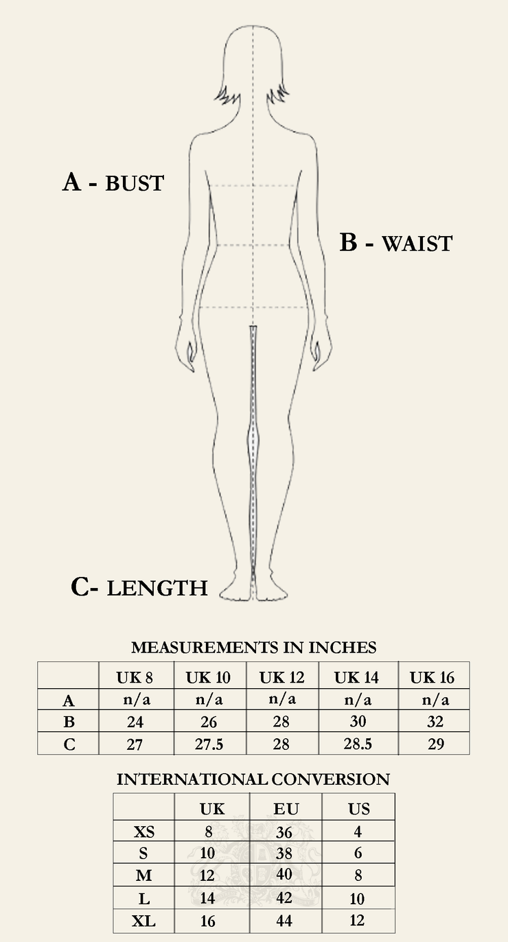 Veuillez noter que tous nos articles sont vendus dans les tailles britanniques. Les tailles de robes australiennes sont les mêmes que celles du Royaume-Uni.