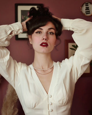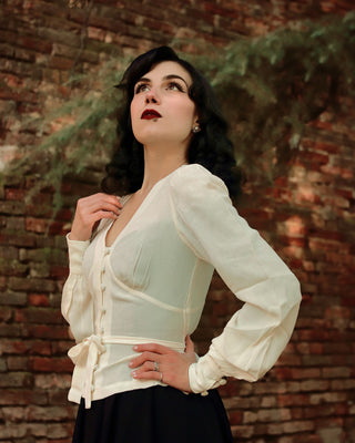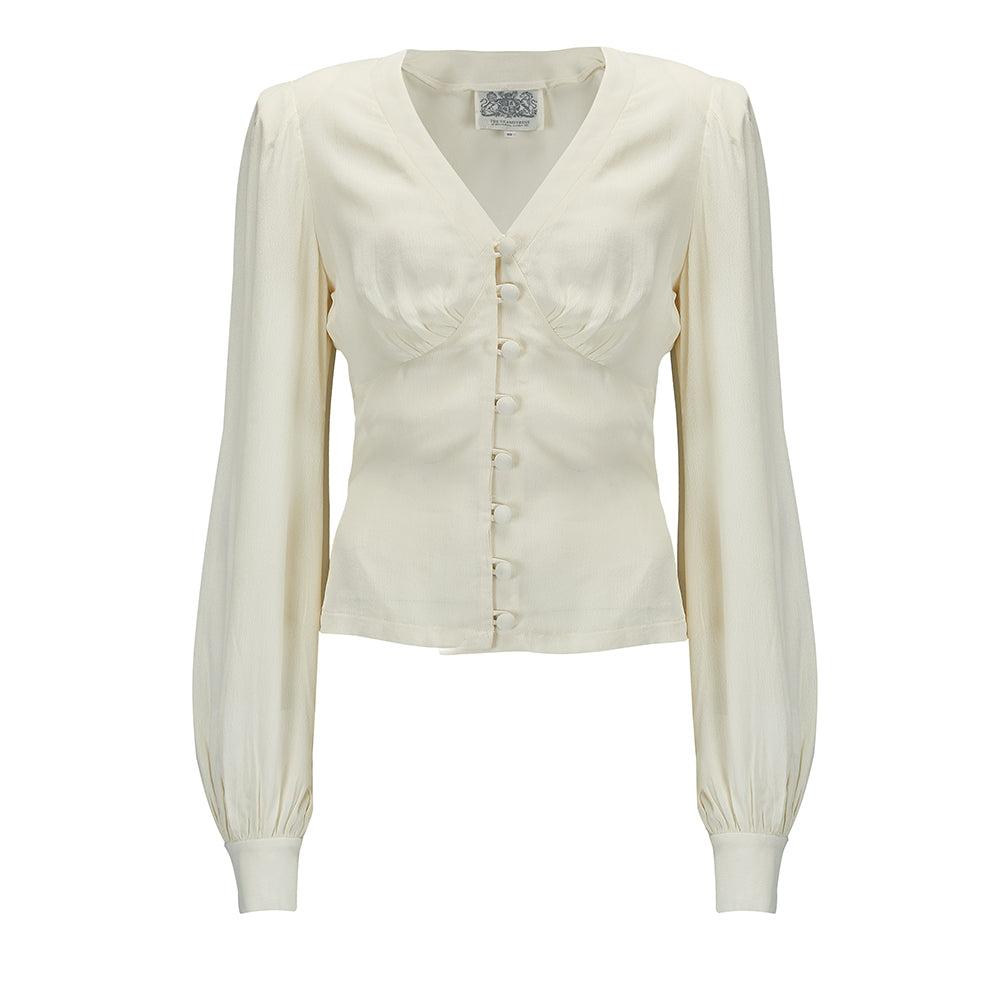 Blouse à manches longues « Jay » en crème, style inspiré vintage classique des années 1940