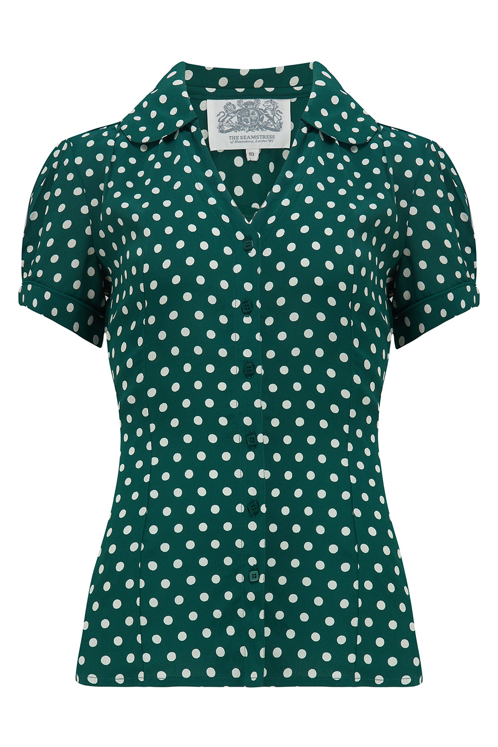 Chemisier « Judy » en vert à pois, style vintage classique des années 1940