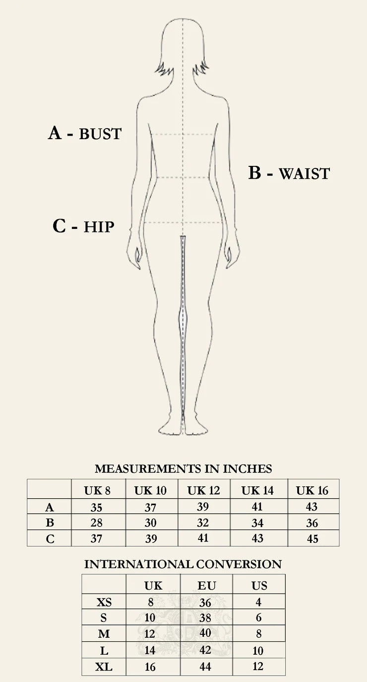 Veuillez noter que tous nos articles sont vendus dans les tailles britanniques. Les tailles de robes australiennes sont les mêmes que celles du Royaume-Uni.