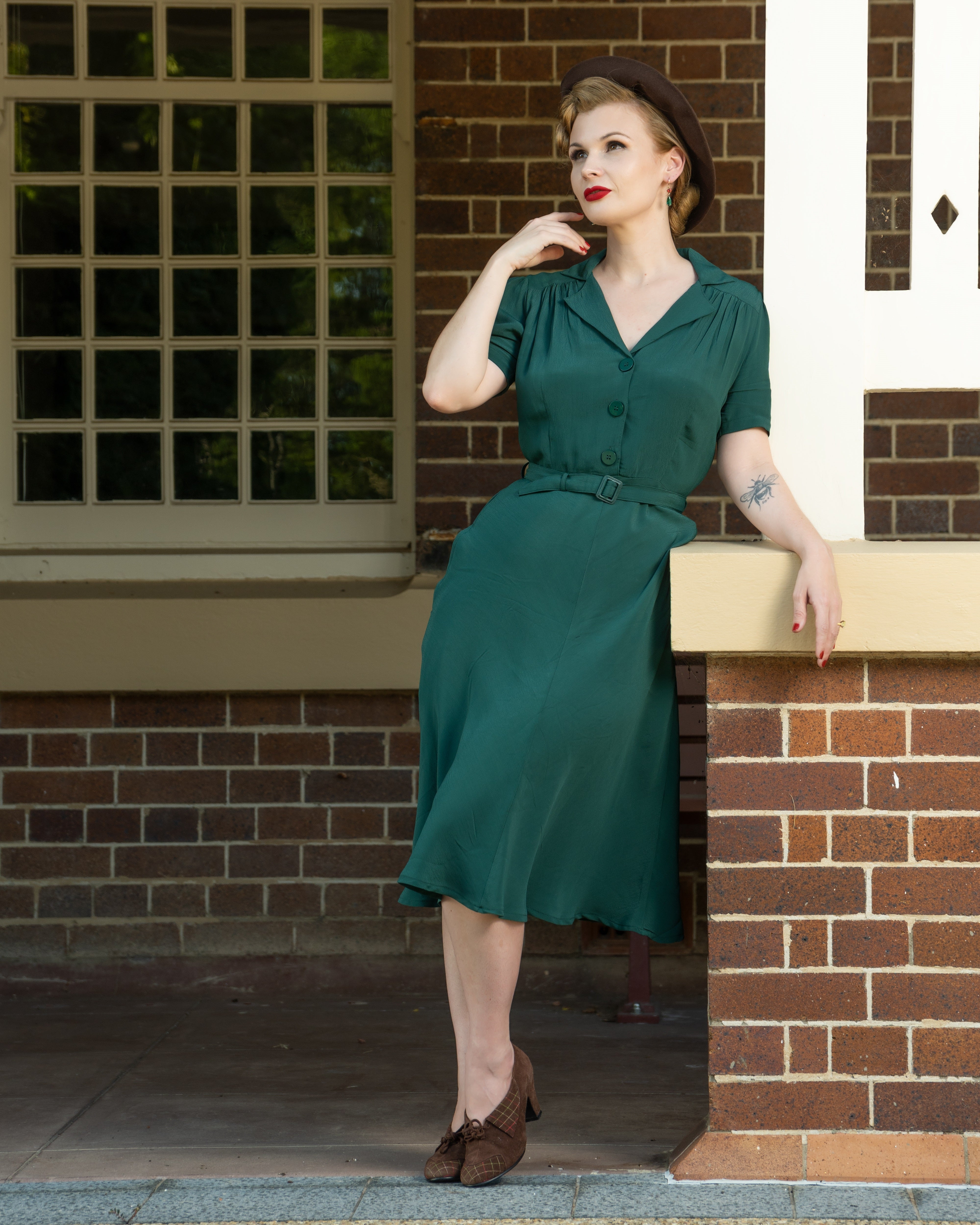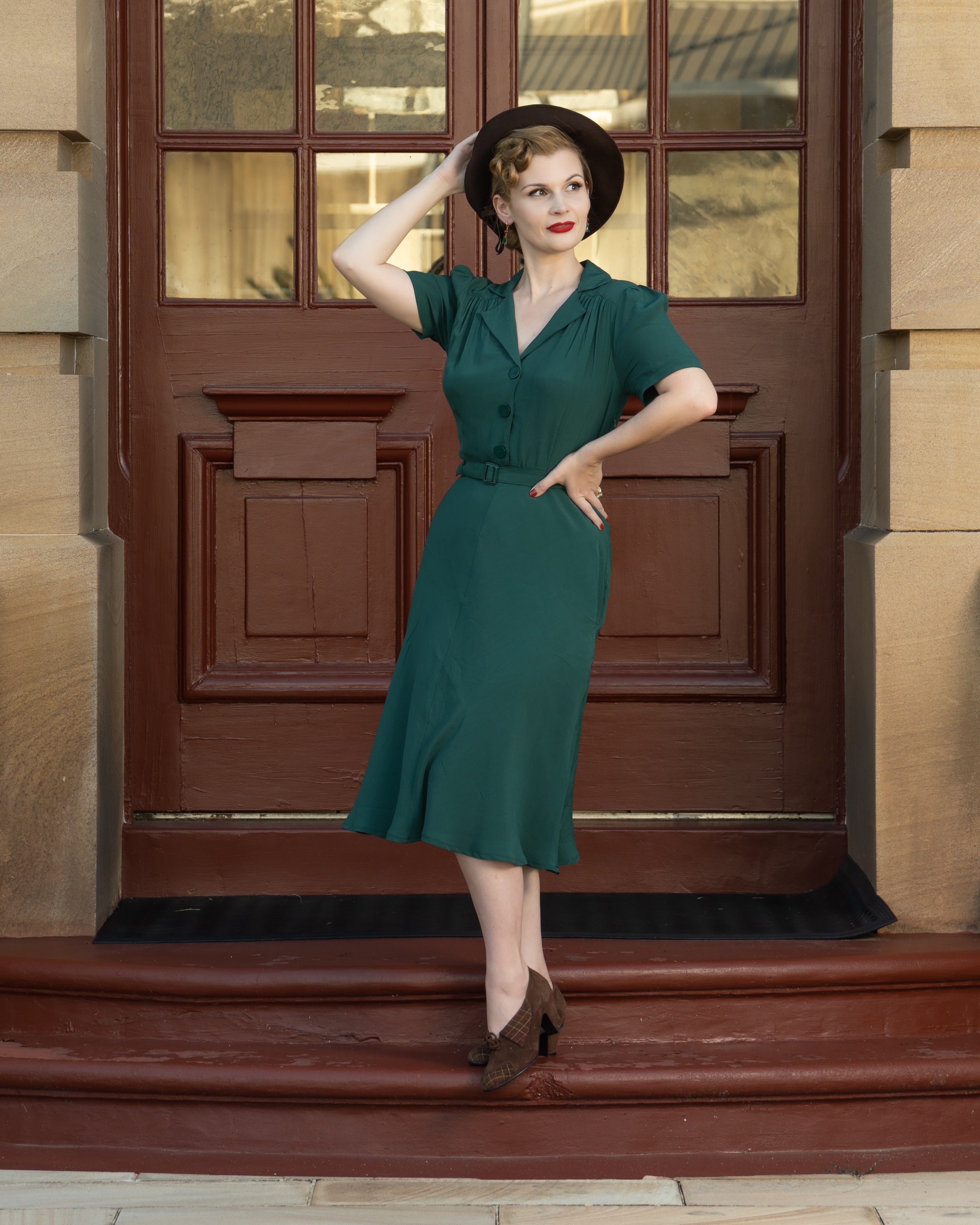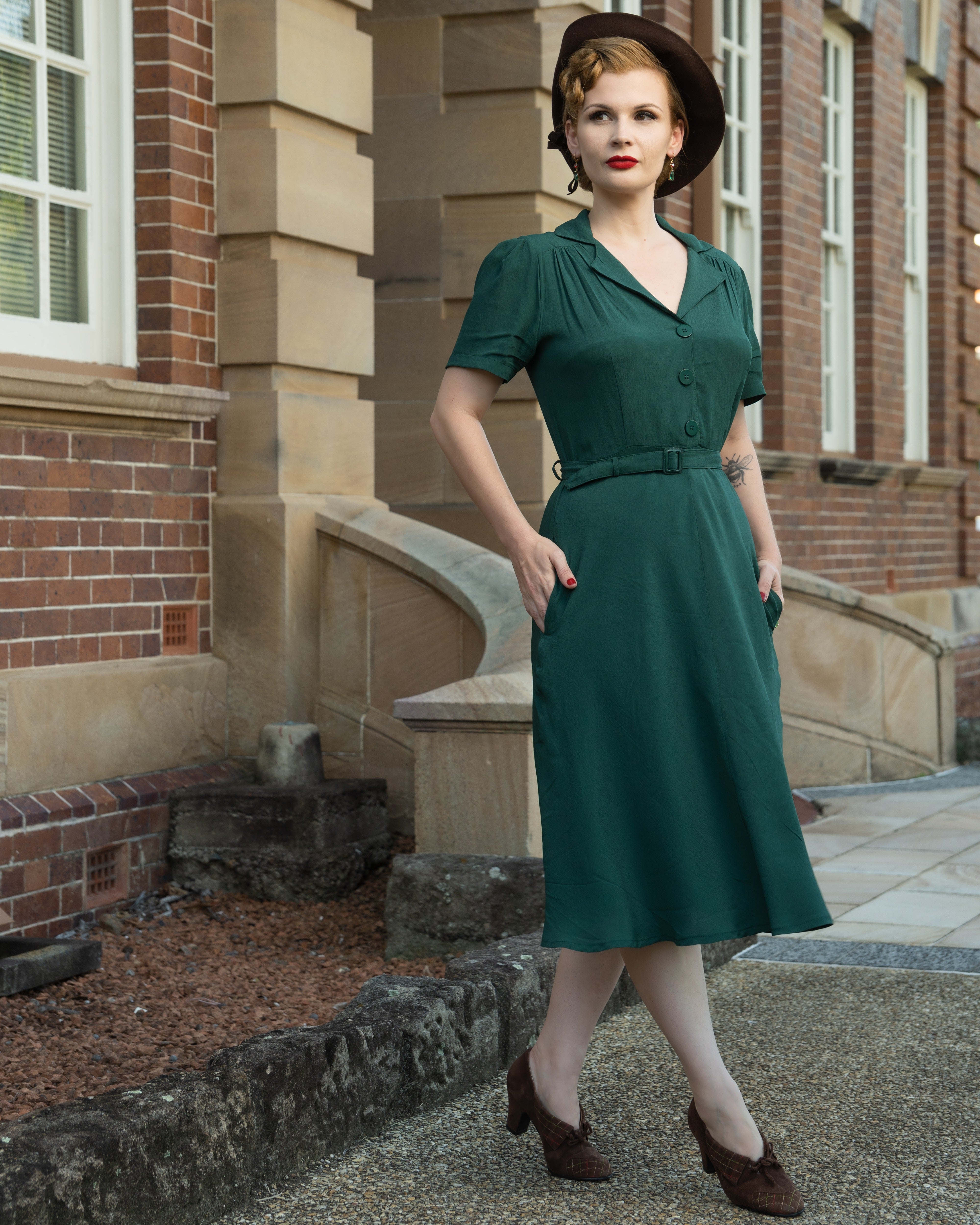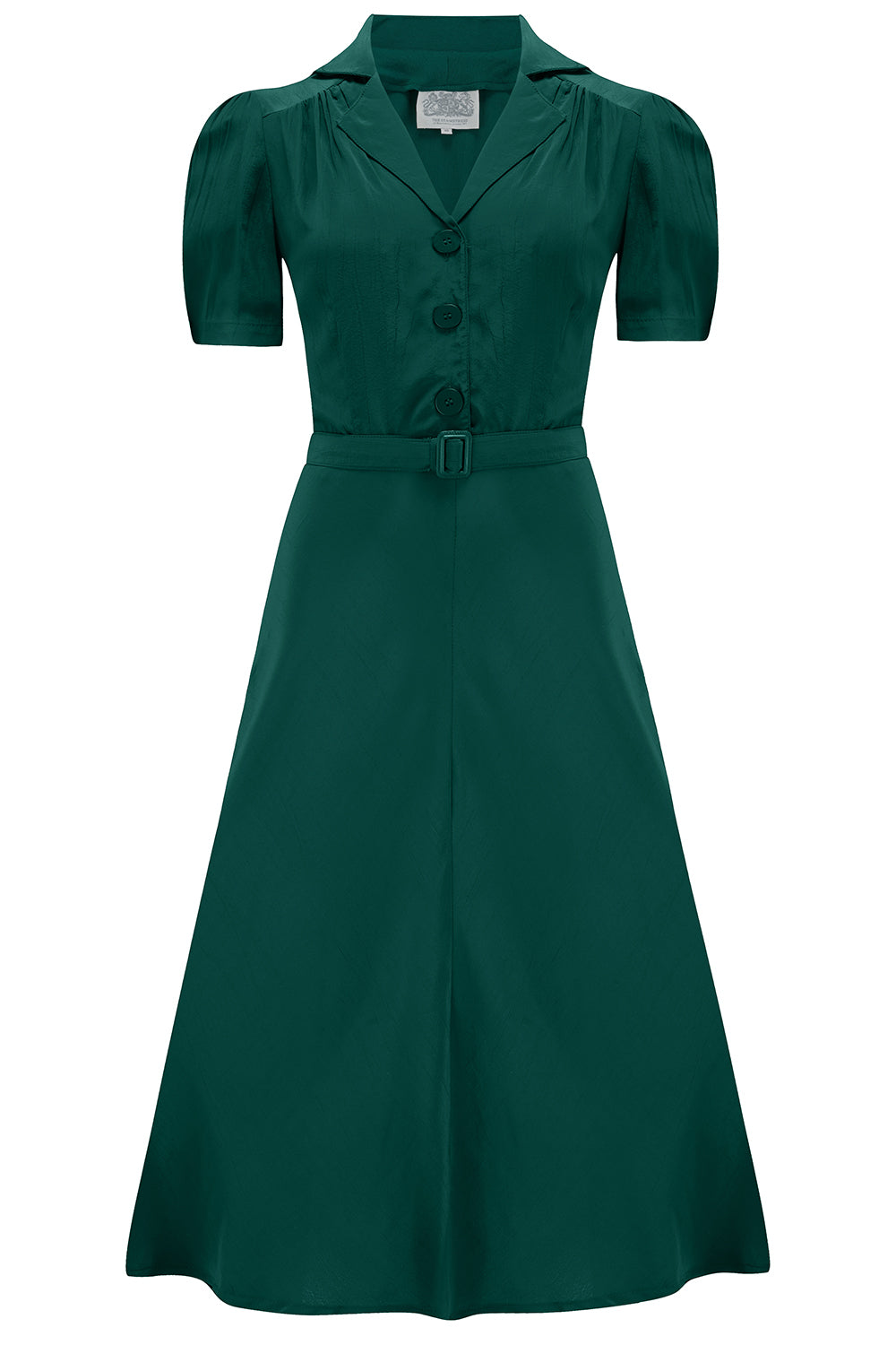 Robe chemise « Lisa » en vert Hampton, style vintage authentique des années 1940 à son meilleur