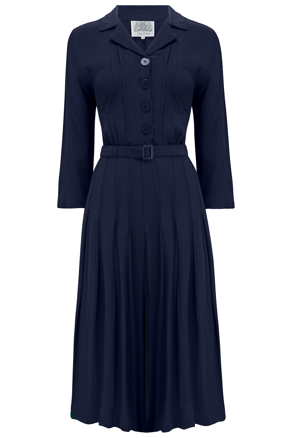 Robe chemise Lucille CC41 en bleu marine massif, classique des années 1940 True Vintage Style