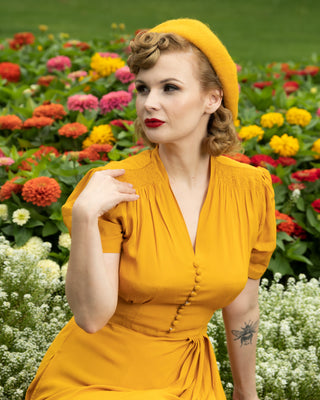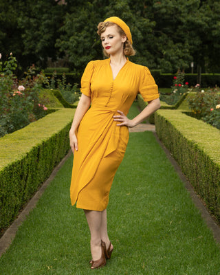 "Robe Mabel" Moutarde, un style vintage classique inspiré des années 1940 CC41 par la couturière de Bloomsbury