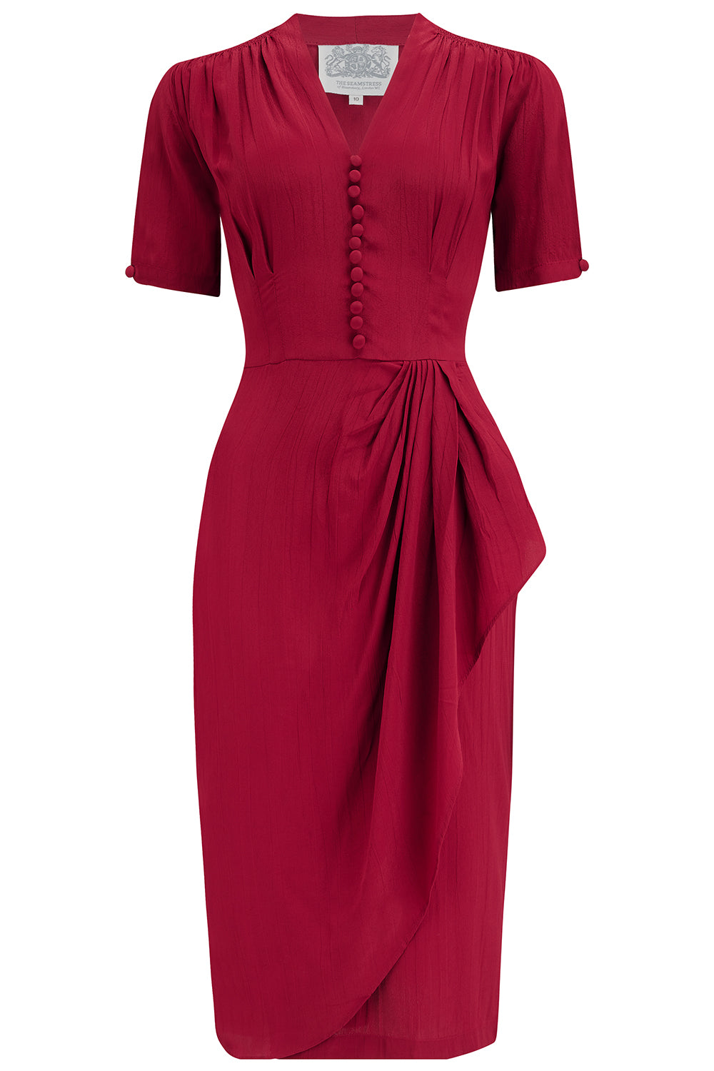 Robe « Mabel » en vin, un style vintage classique inspiré des années 1940 CC41 par la couturière de Bloomsbury