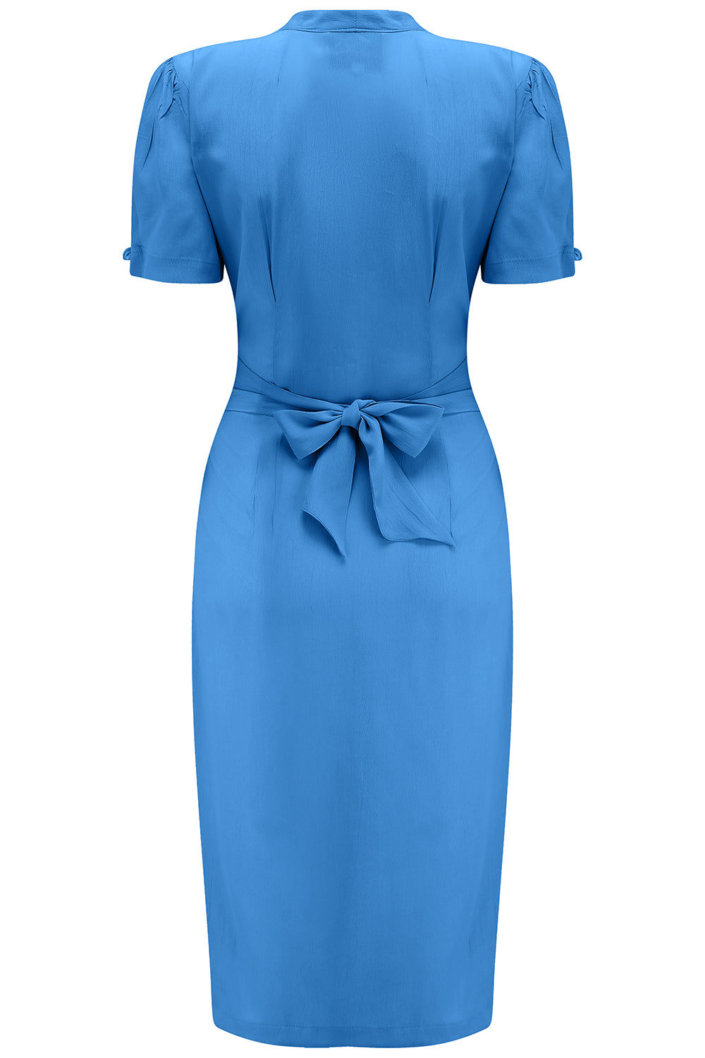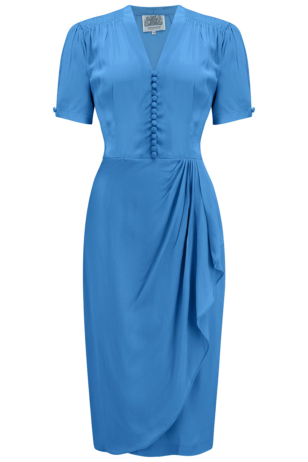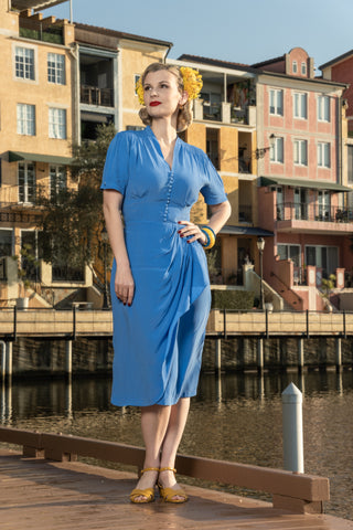 "Mabel" Waterfall Dress in Palace Blue, A Classic 1940s Inspired Vintage Style
