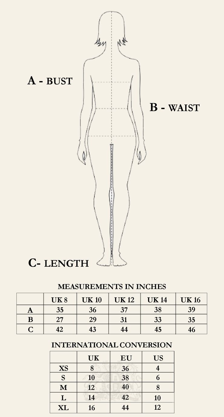 Veuillez noter que tous nos articles sont vendus dans les tailles britanniques. Les tailles de robes australiennes sont les mêmes que celles du Royaume-Uni.