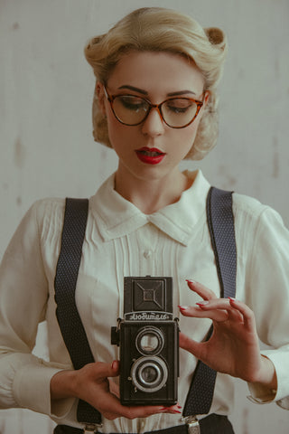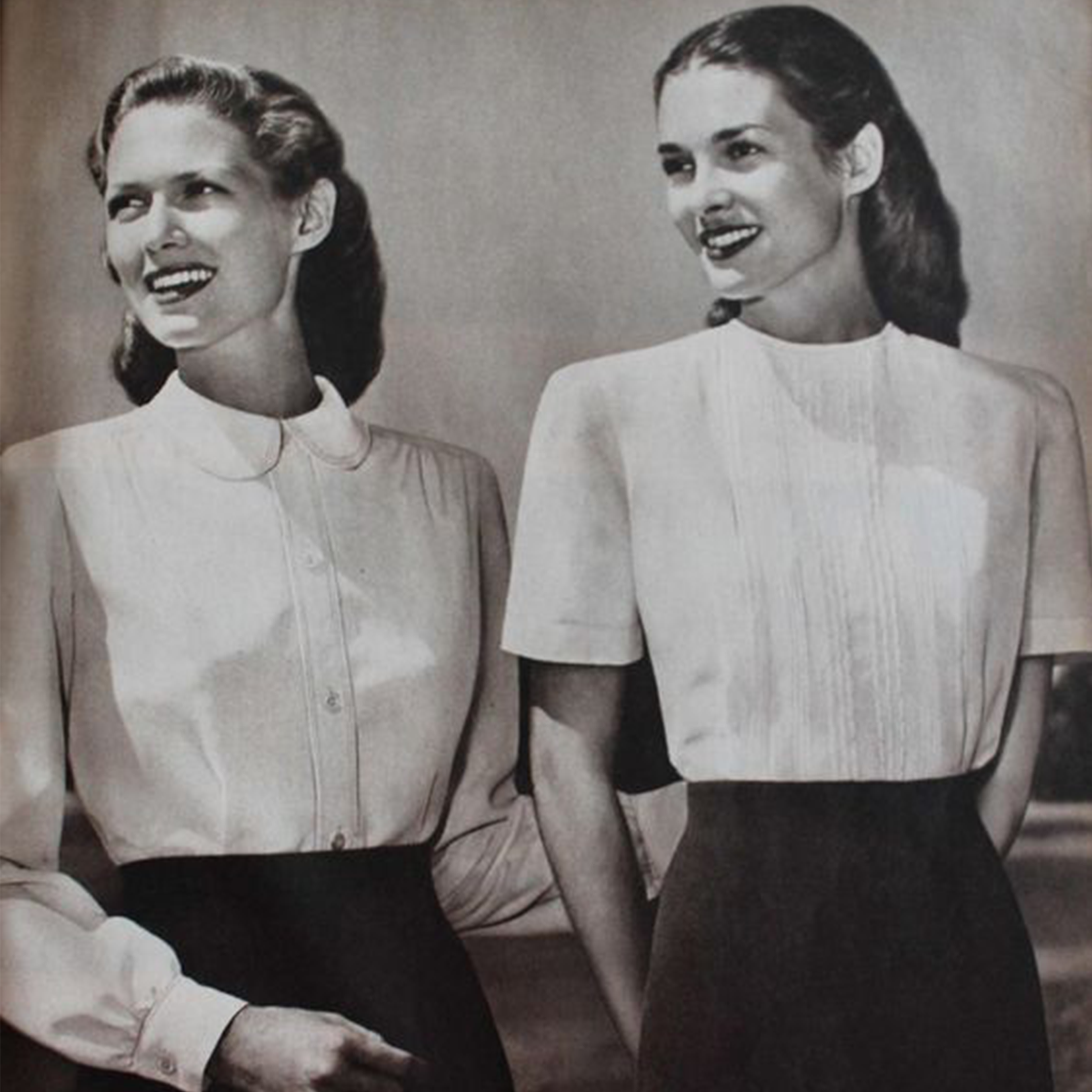 Cette superbe blouse à manches longues est un classique ! Il a une forme très flatteuse avec son design classique des années 1940. De jolis détails comme le col de chemise plat, les épaules pincées et la fermeture à nouer sur le devant, finis avec de jolis petits boutons en forme de cœur et de magnifiques manches longues.