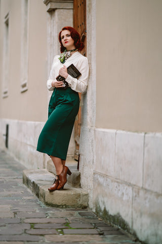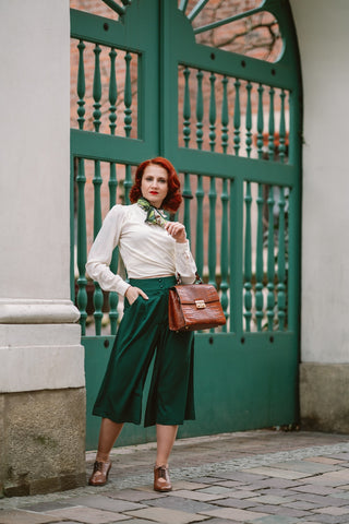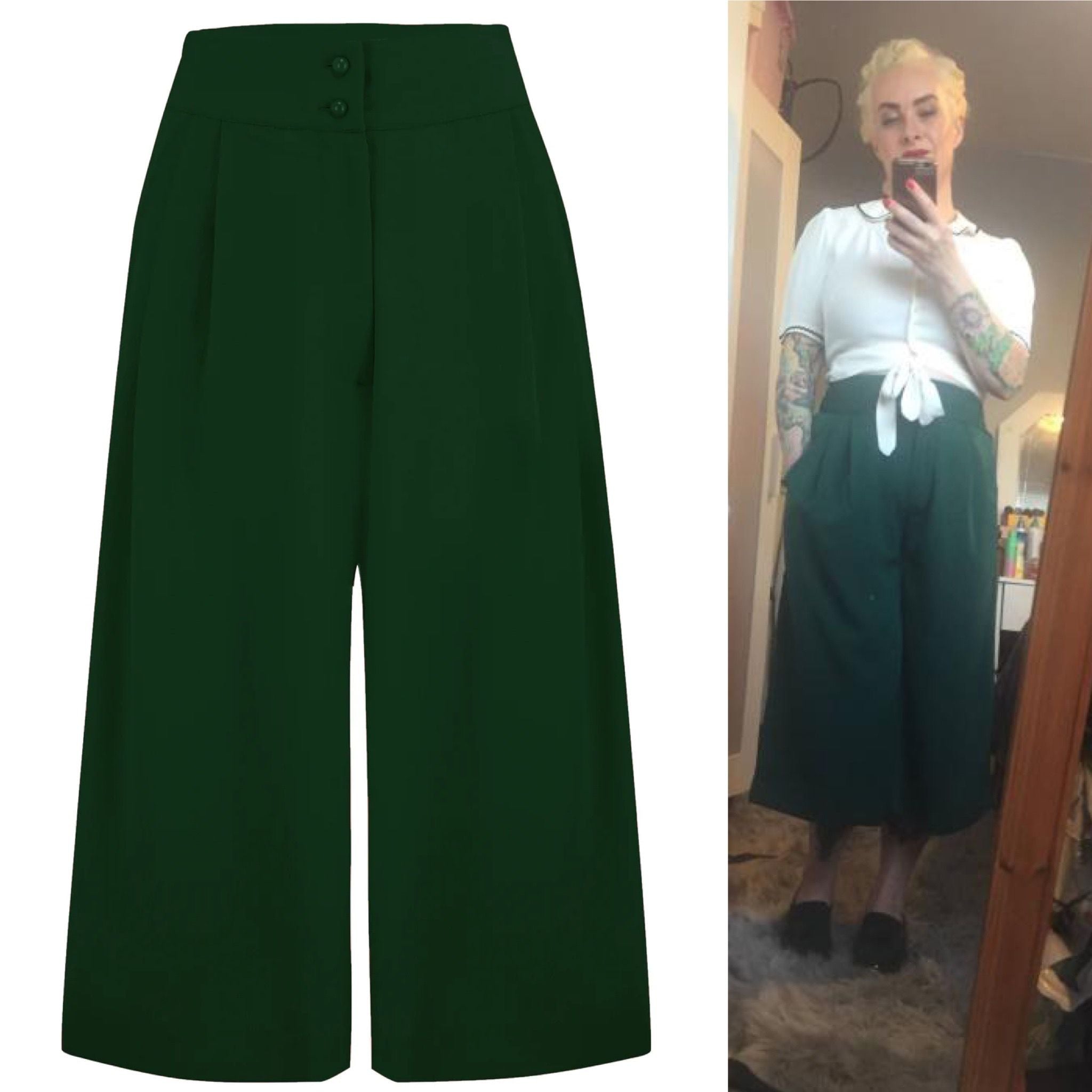 La jupe-culotte Palazzo "Sophia" en vert uni, classique et facile à porter, style d'inspiration vintage