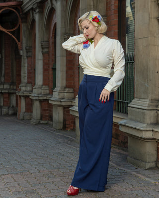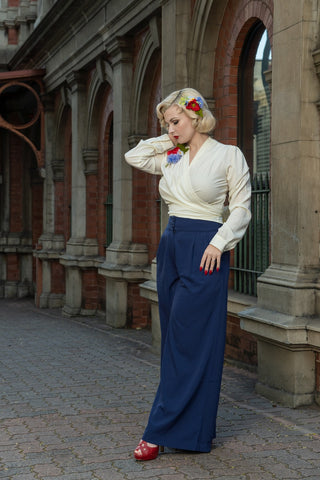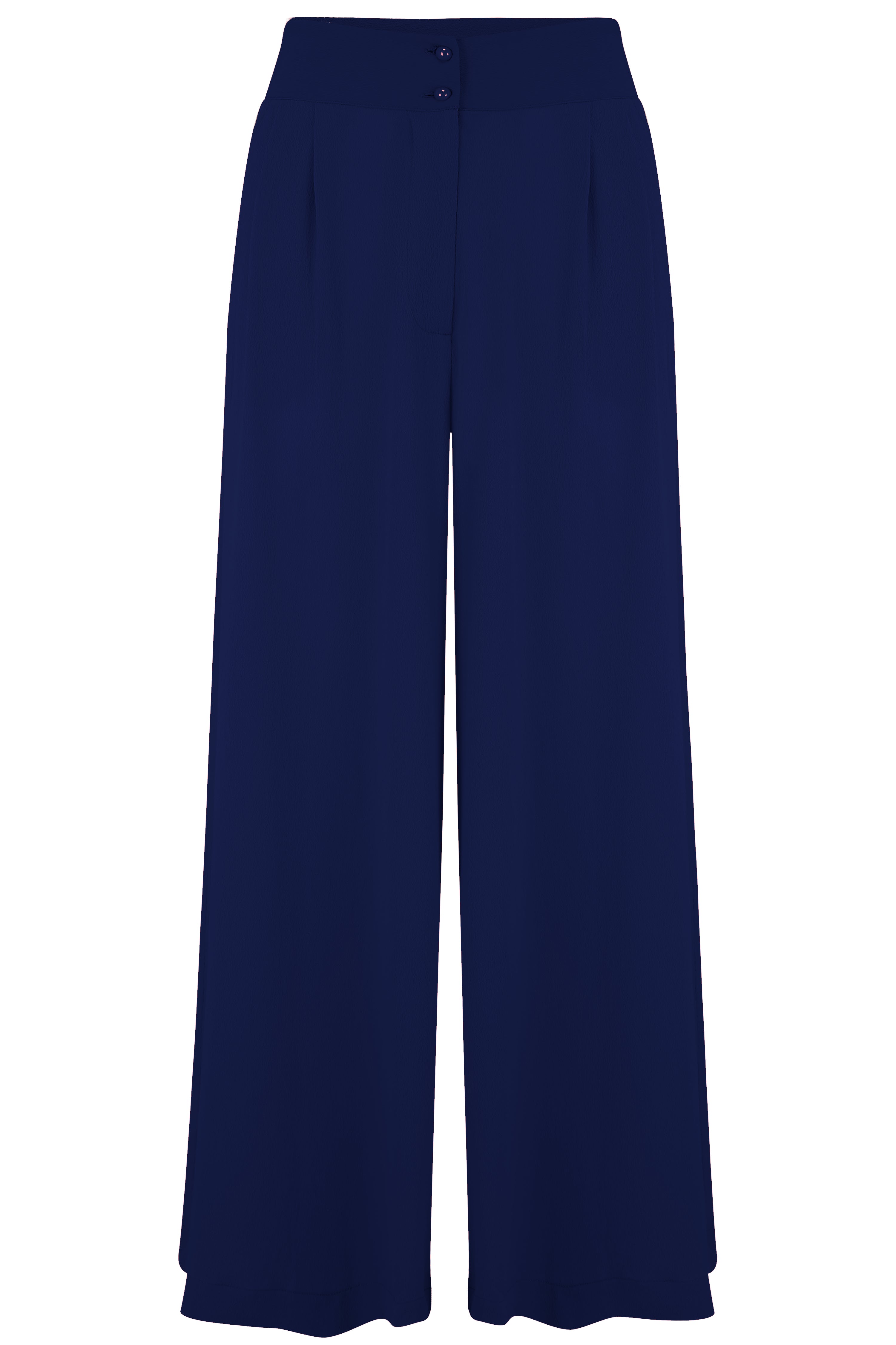 Le pantalon large Palazzo "Sophia" en bleu marine, facile à porter, style d'inspiration vintage