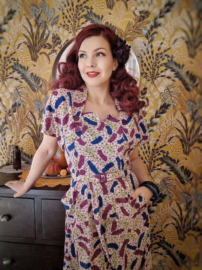 A Stunningly versatile Dress & Buttoned on Detachable Bolero set is the answer to your vintage style needs. This wonderful, easy to wear dress radiates authentic late 1940s - early 1950’s Style with the cute cut and effortless charm, The shrug style bolero is incredibly unique by the way it buttons directly onto the dress at the shoulder straps & can quickly be removed at any time for super versatile outfit.