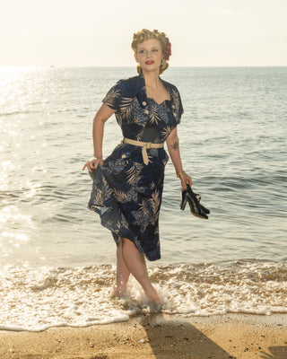 Flatteur, amusant et bien-être ne sont que quelques mots que nous utiliserions pour décrire cette adorable tenue. Tout simplement parfait pour des journées amusantes dans une foire vintage ou une soirée swing au rythme de votre Rock'n'Roll préféré. Quoi que vous y fassiez, vous serez sûr d'avoir l'air amusant et élégant quoi que vous choisissiez de faire.