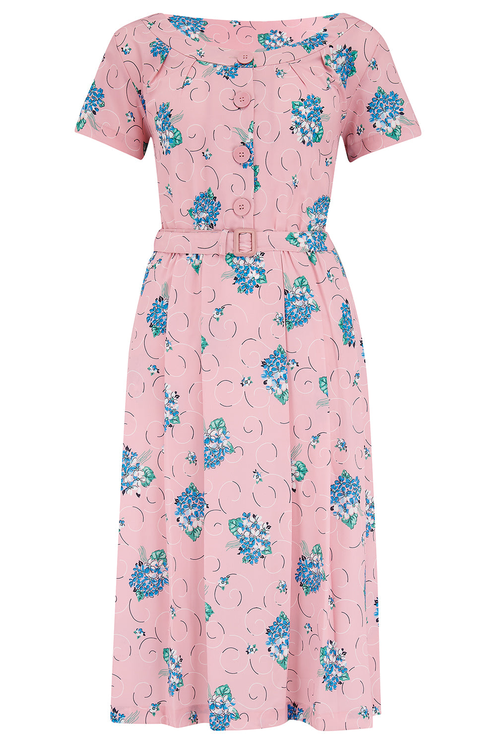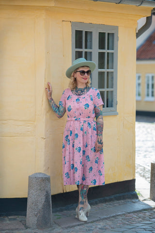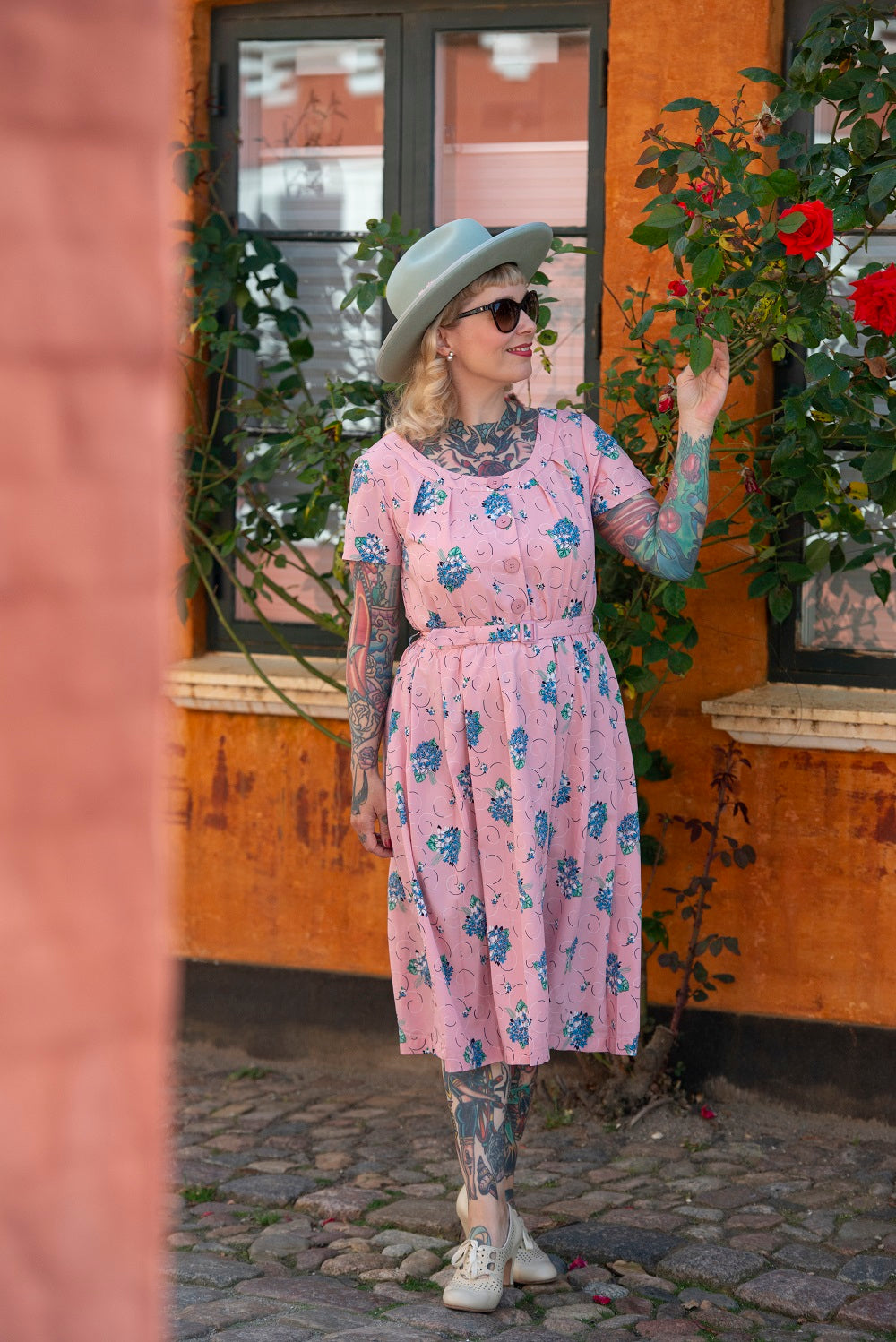 **Sample Sale** The “Brigitte" Dress in Pink Summer Bouquet, True 1950s Vintage Style