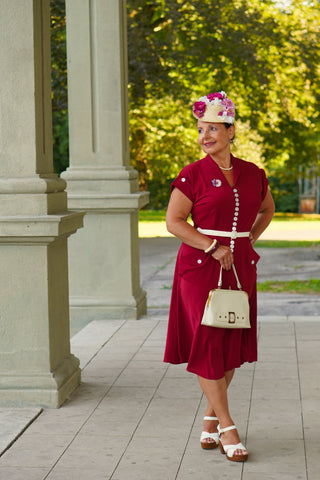 La robe « Casey » en vin massif, style vintage vrai et authentique des années 1950
