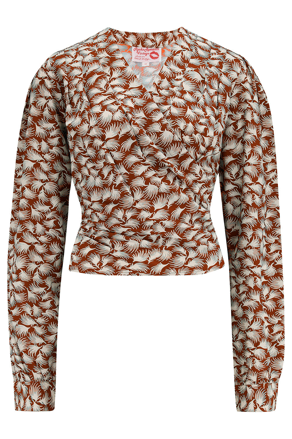 Le chemisier portefeuille à manches longues « Darla » en imprimé Cinnamon Whisp, véritable style vintage