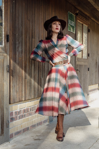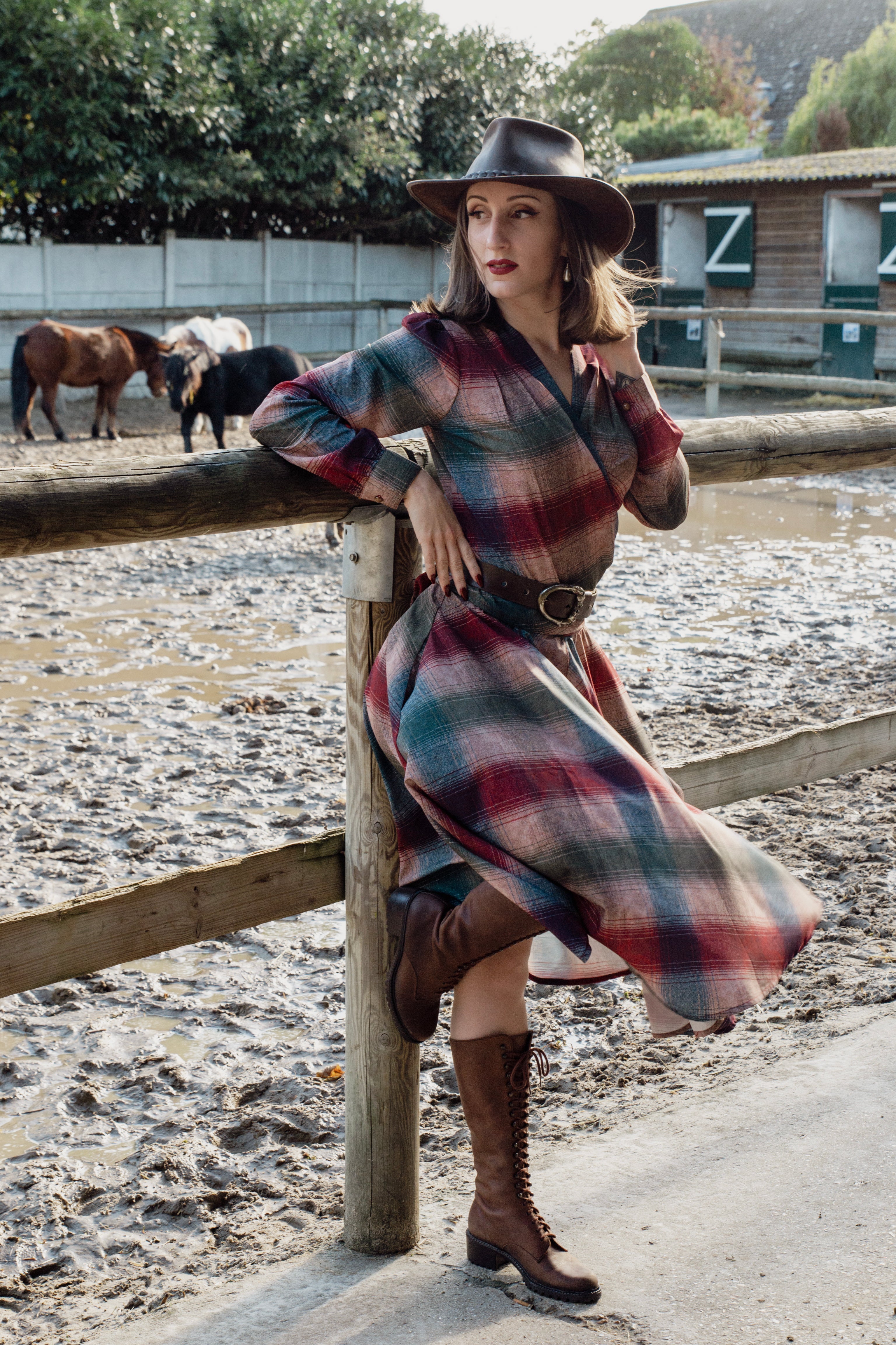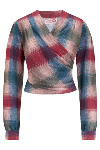 Le chemisier portefeuille à manches longues « Darla » en imprimé à carreaux Cotswold, véritable style vintage