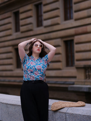 The most versatile true vintage style blouse you will ever have.. the Darla is a full wrap blouse meaning its fit is totally flexible & front breast pleats means even more flexibility of for especially for larger busts. Tie it at the back side or front the choice is totally yours to create your perfect look.. This stunningly and easy to wear blouse lends itself to a huge range of classic styles from the early 1940s right the way through to the late 1950s.. You can easily pair it with skirts, trousers or even a pair of your favorite jeans.. It really is the most versatile blouse we know and we love it .. xx