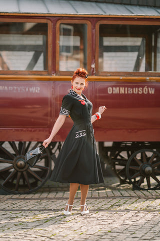 La robe chemise « Loopy-Lou » en noir avec contraste RicRac, véritable style vintage des années 1950