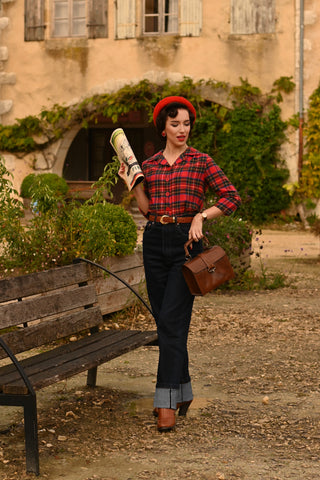 Ce fabuleux pantalon à jambe large et taille haute est une copie directe de la coupe d'une paire originale des années 40, pour une authenticité totale. oh et les poches ..! Parfait pour travailler ou jouer.. Tout simplement époustouflant, le style vintage classique des années 1940 à son meilleur.. Nous les adorons xx
