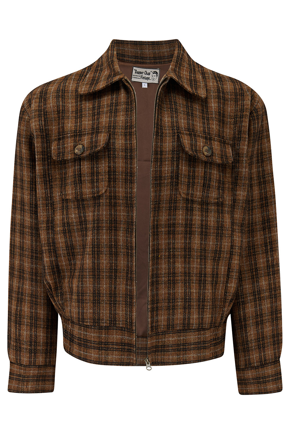 The Mens "Ricky" Sport Jacket In Brown Check.. 100% Wool Outer & Satin Lining .. 1950s Vintage Menswear