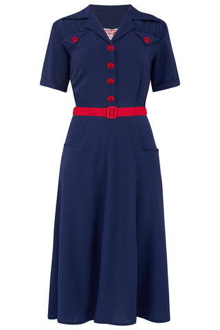 La robe « Polly » en bleu marine uni, style vintage vrai et authentique des années 1950