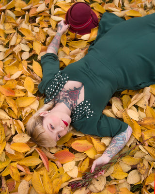 La "Robe Veronica" Hampton Green, un style vintage classique inspiré des années 1940 par la couturière de Bloomsbury