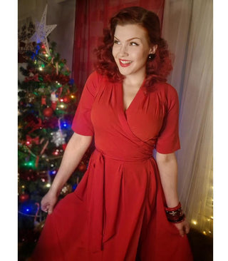 La robe portefeuille complète « Vivien » en rouge, véritable style des années 1940 au début des années 1950