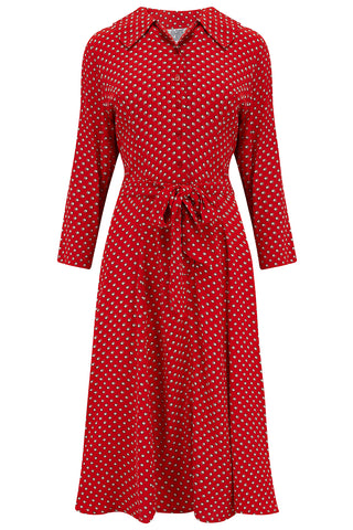 Inspirés par une pièce originale de nos archives des années 1940, nous sommes ravis de dévoiler enfin notre dernier design, Violet. Tout neuf pour l'automne-hiver 2022 et disponible en 2 imprimés CC41 Ditzy authentiques ou rouge rouge à lèvres uni. Manches 3/4 et ceinture à nouer, avec un joli petit noeud sur l'empiècement milieu dos… juste fabuleux.