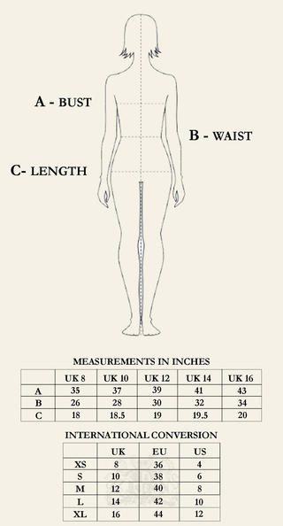 Veuillez noter que tous nos articles sont vendus dans les tailles britanniques. Les tailles de robes australiennes sont les mêmes que celles du Royaume-Uni.