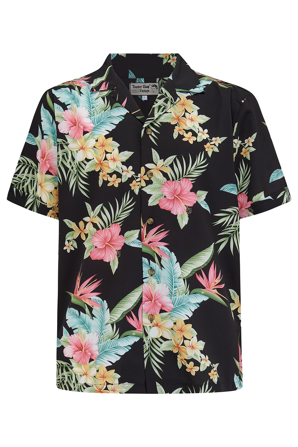 Mens "Cooper" Short Sleeved Casual Hawaiian Shirt In Black Honolulu Print.. 1950s Sport Shirt