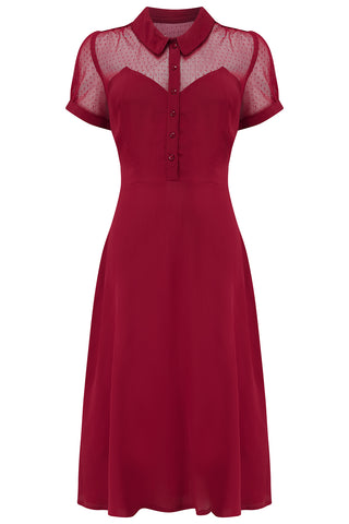 Charlene Shirtwaister Dress in Solid Wine, Classic True 1950s Vintage Style
