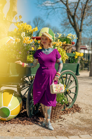 Ruby Dress in Mulberry, A Classic & Authentic 1940s Vintage Inspired Style By The Seamstress Of Bloomsbury