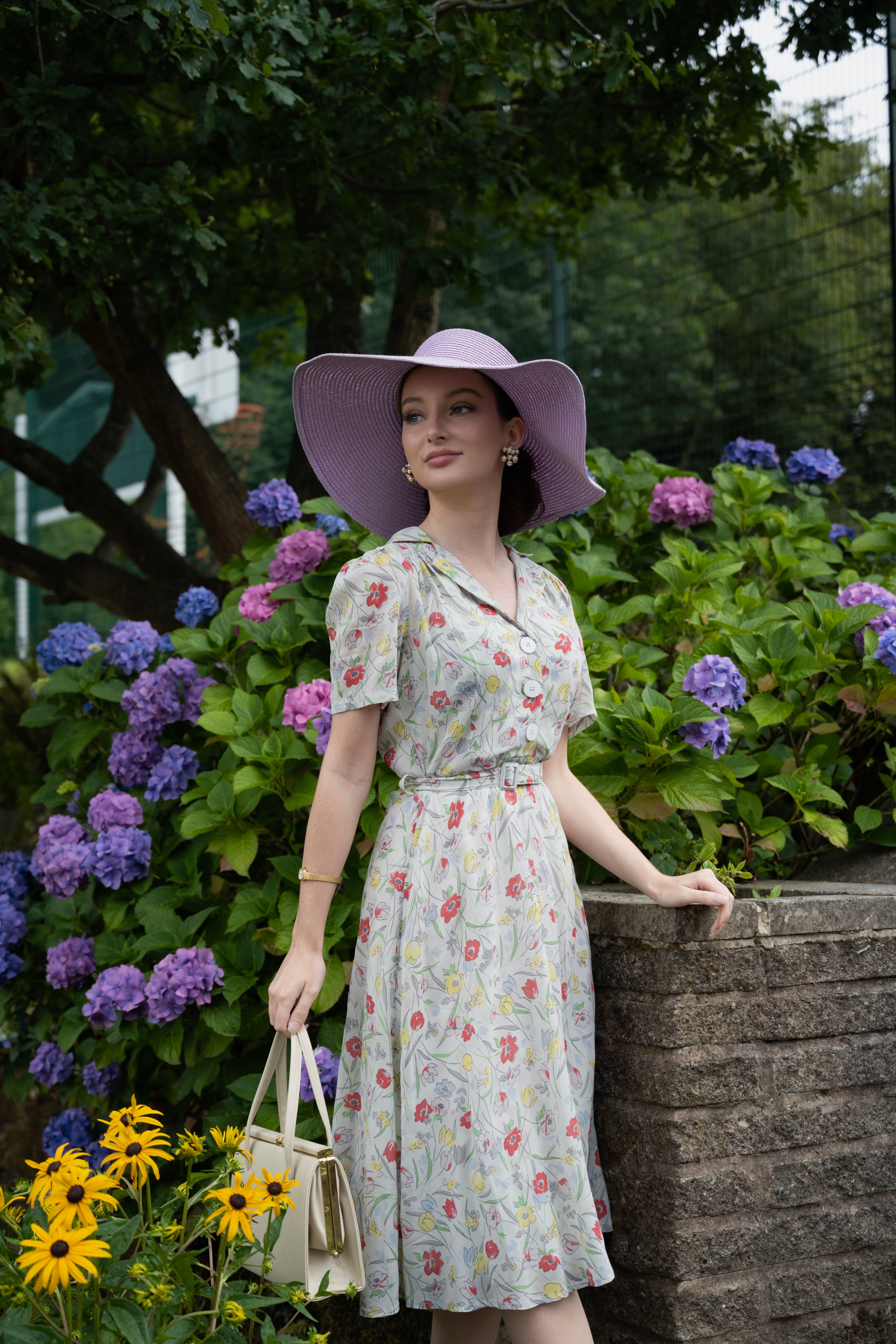 Robe de thé « Lisa » en Georgette - Imprimé coquelicot, style vintage authentique des années 1940